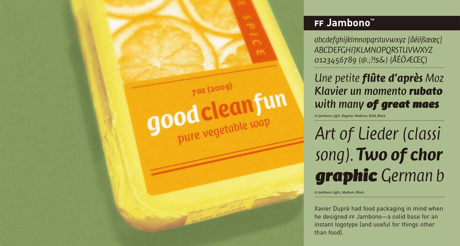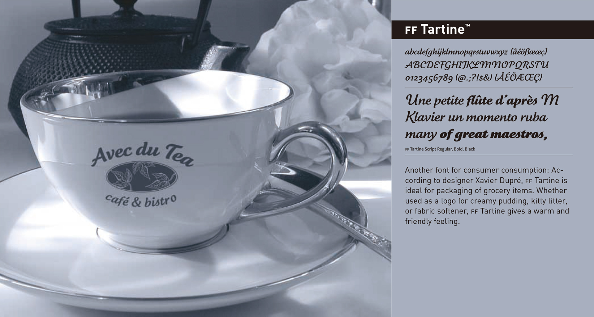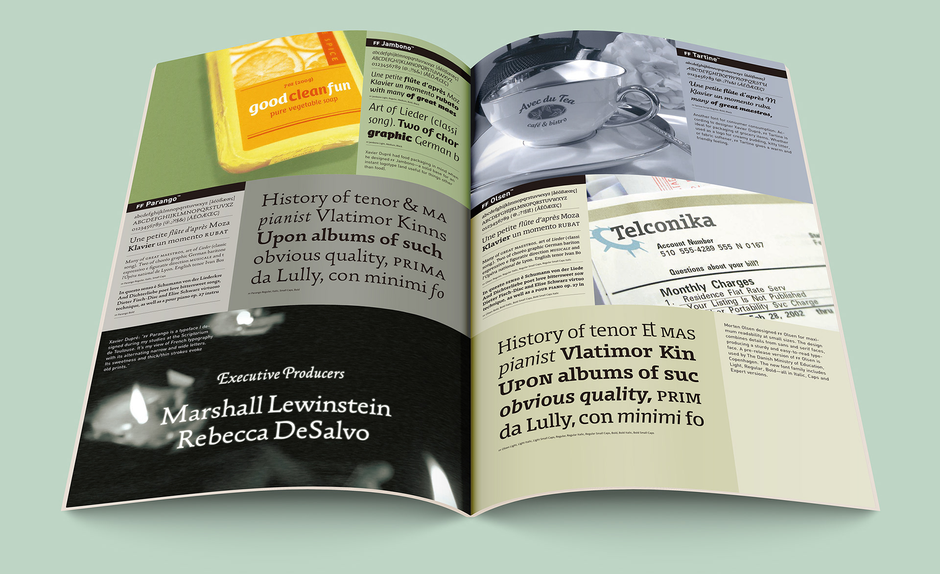 This was a really fun project for The Font Company. I invented and designed fake companies and products in order to showcase new typefaces in their catalog.